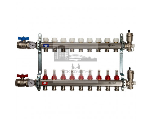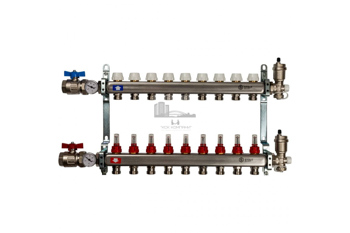 Описание - Коллектор STOUT из нержавеющей стали в сборе с расходомерами 9 вых. SMS 0907 000009