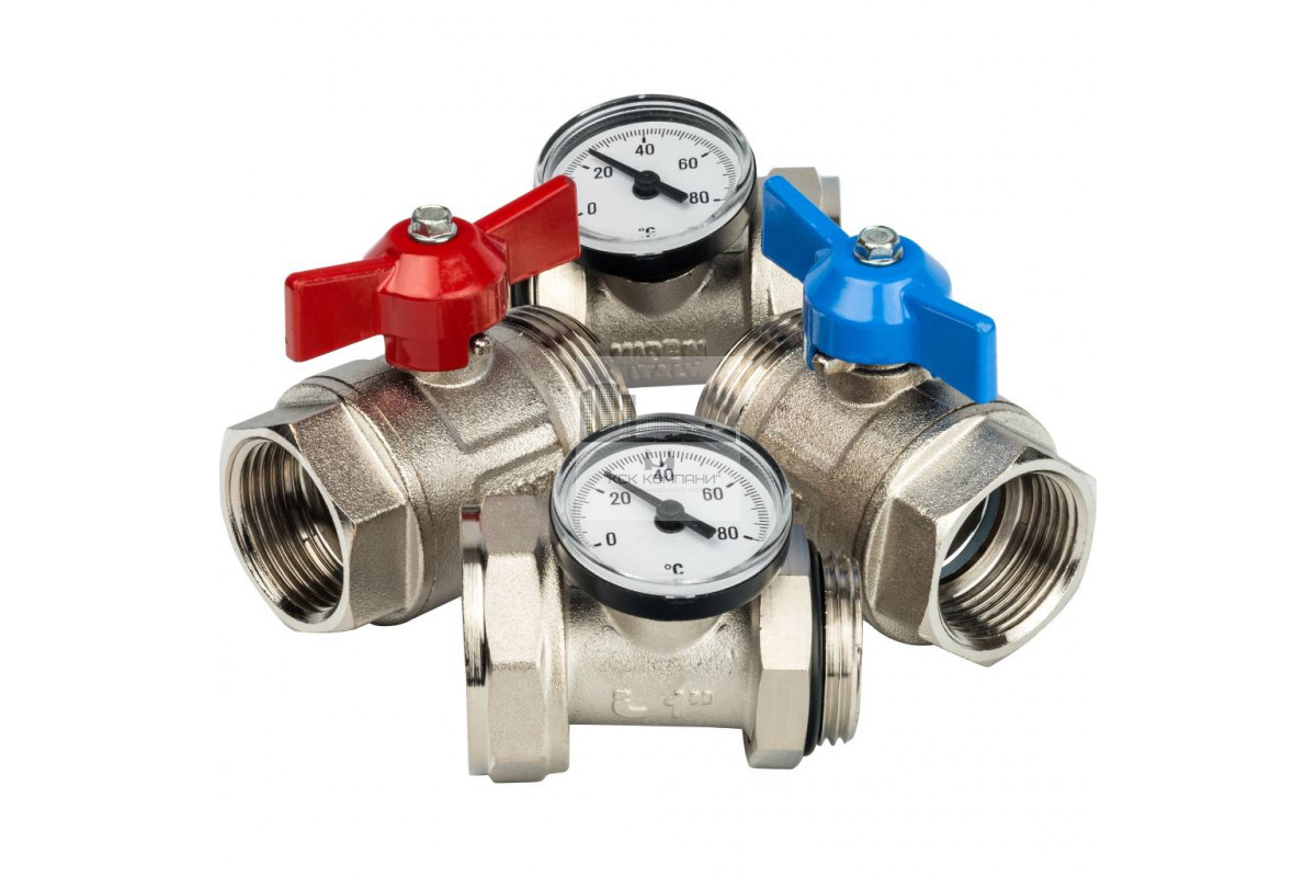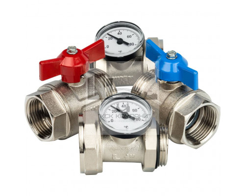 Описание - Комплект прямых шаровых кранов с термометрами 1” STOUT SMS-1000-030001