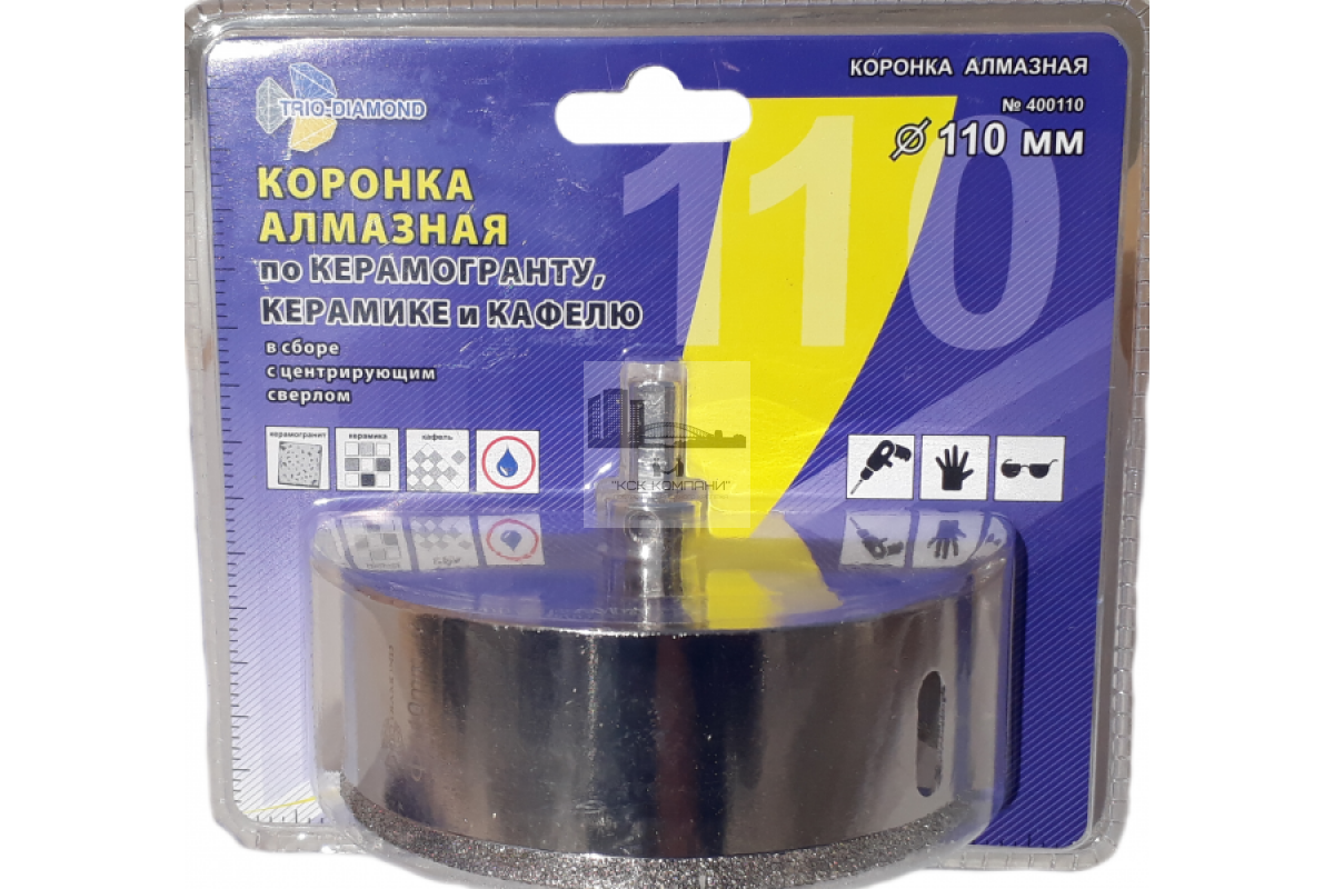 Коронка алмазная по керамике и кафелю с центрирующим сверлом 110мм (1 шт)