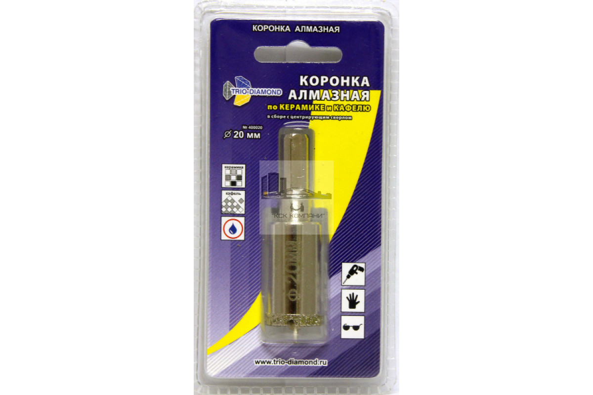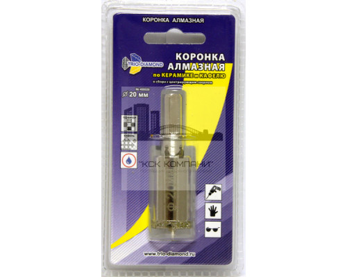 Коронка алмазная по керамике и кафелю с центрирующим сверлом 20мм (1 шт)