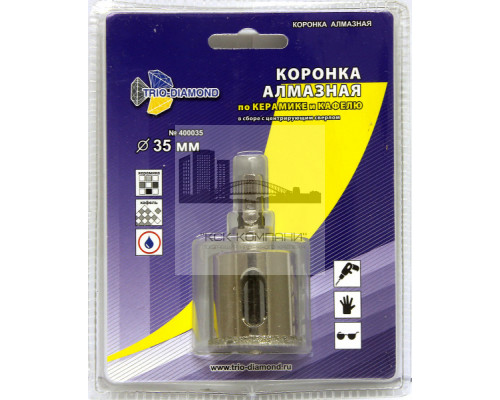 Коронка алмазная по керамике и кафелю с центрирующим сверлом 35мм (1 шт)