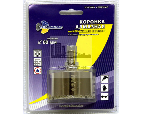 Коронка алмазная по керамике и кафелю с центрирующим сверлом 60мм (1 шт)