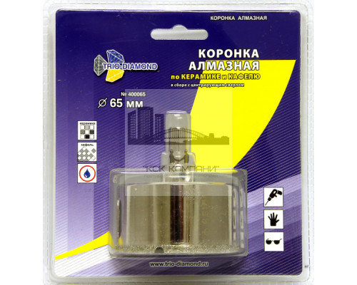 Коронка алмазная по керамике и кафелю с центрирующим сверлом 65мм (1 шт)