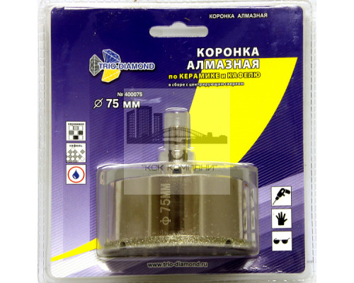 Коронка алмазная по керамике и кафелю с центрирующим сверлом 75мм (1 шт)