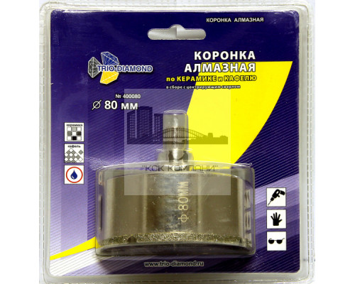 Коронка алмазная по керамике и кафелю с центрирующим сверлом 80мм (1 шт)