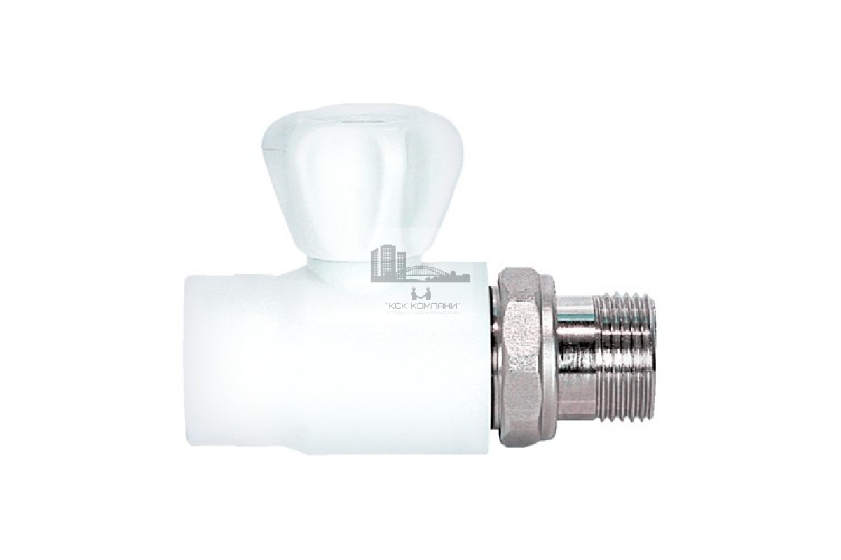 Кран шаровой полипропиленовый для радиатора прямой Ø 20 мм × 1/2 (белый)