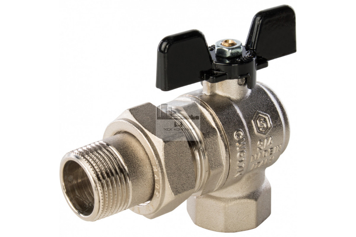 Описание - Кран шаровой полнопроходной угловой ВР/НР 3/4" американка, ручка бабочка Stout