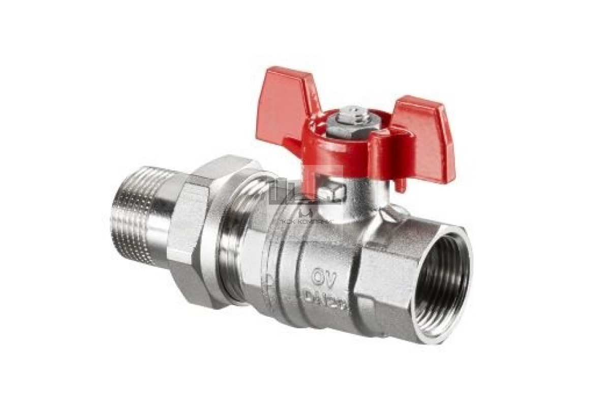 Описание - Кран шаровый 1 1/4" НГ с американкой маховик из алюминия Optibal Oventrop