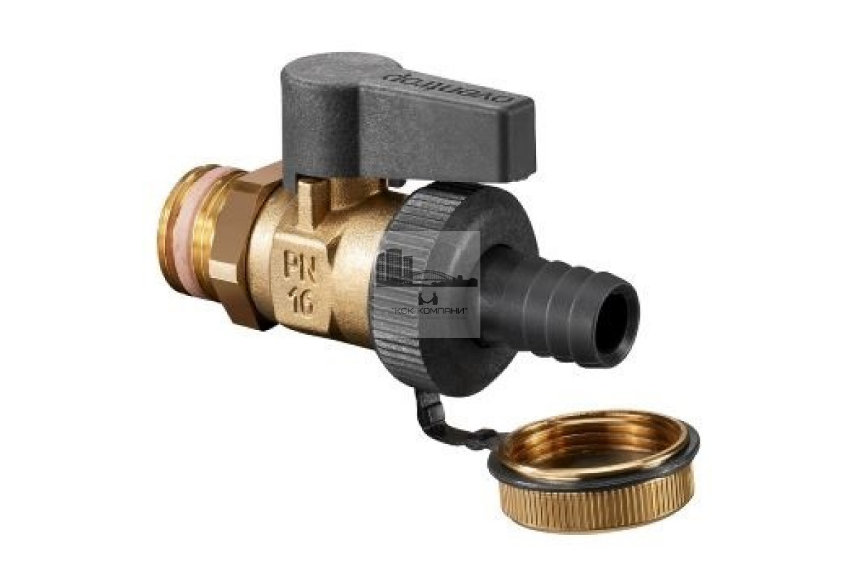 Шаровой кран для заполнениия или слива теплоносителя из отопительной системы, отопительного котла, из радиаторов, водонагревателей и трубопроводов. Может использоваться для воды и неагрессивных жидкостей, например, антифриза. Изготовлен из латуни, имеет наружную резьбу с контрагайкой и самоуплотнением. Оснащен маховиком для запирания, штуцером с мягким уплотнением для шланга и колпачок. Имеет наружную резьбу 1/2", эксплуатация при давлении да 16 бар с максимальной температурой теплоносителя 120°C. Страна изготовления Германия.