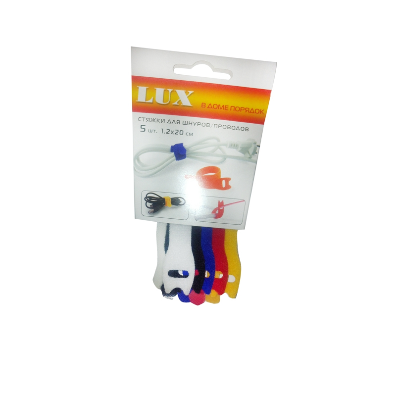 Стяжка-липучка многоразовая нейлоновая для шнуров и проводов 5 цветов (5 шт./уп.), 1.2x200 мм