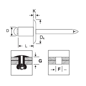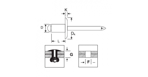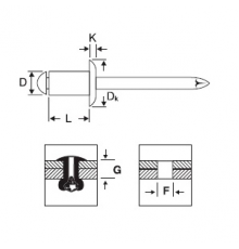 Заклепка вытяжная SARIV алюминий - оцинкованная сталь (стандартный бортик), 5x6 мм