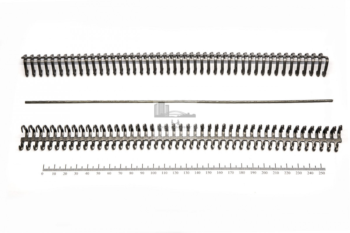 Минимальная партия: 1 шт (комплект из стали ГОСТ 1050-74-09Г2с: две планки с зубцами, длиной 290 мм, толщиной 1.5 мм; два штыря с просечками диаметром 2.2 мм)