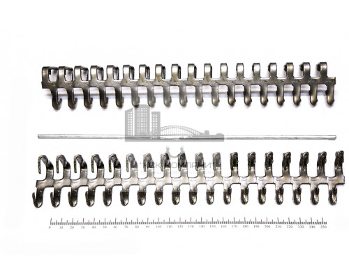 Минимальная партия: 1 шт (комплект из стали ГОСТ 1050-74-09Г2с: две планки с зубцами, длиной 290 мм, толщиной 2.5 мм; два штыря с просечками диаметром 4 мм)