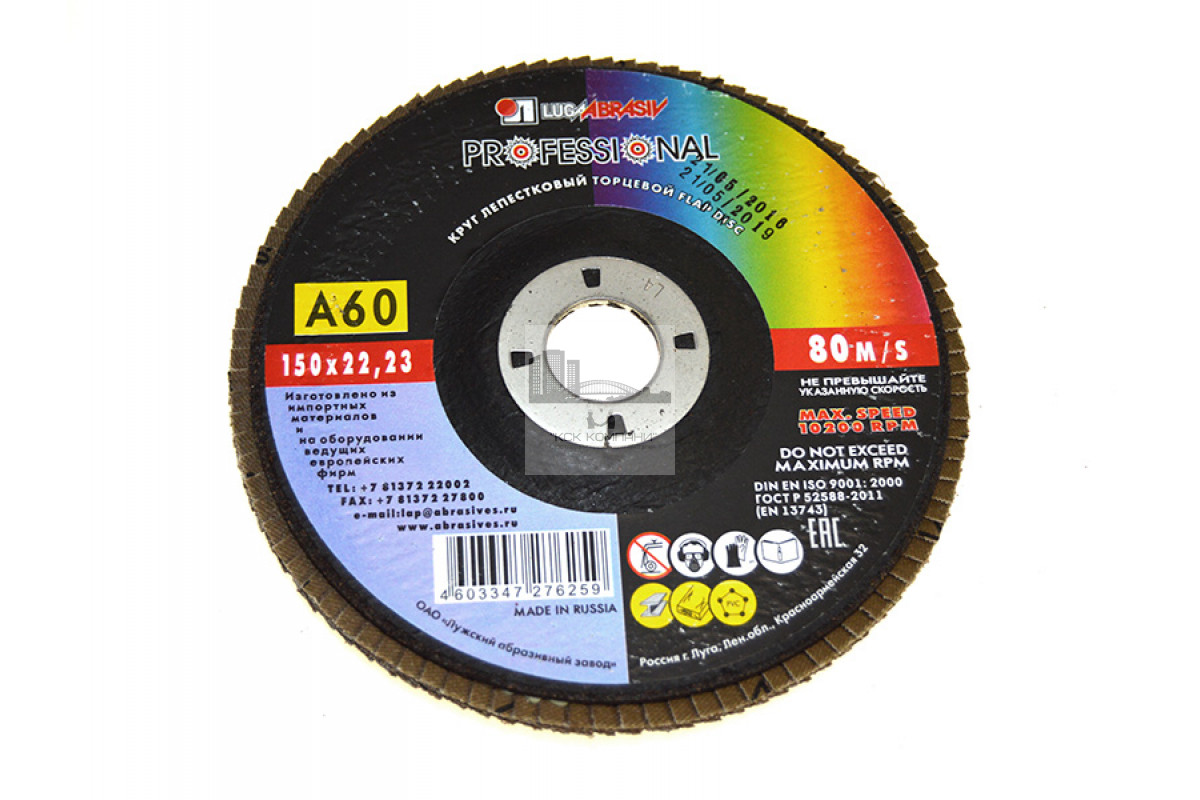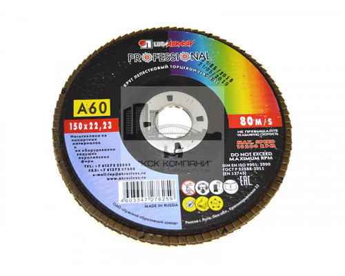 Круг лепестковый торцевой 150х22мм зернистость 60 КЛТ-1 ЛУГА 14А Распродажа Луга