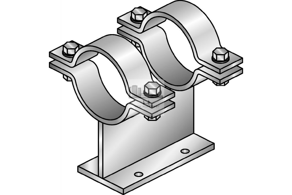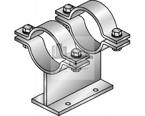 Горячеоцинкованные двойные трубные опоры для крепления труб с номинальным диаметром 25-300 мм к балкам MI при высоких нагрузках