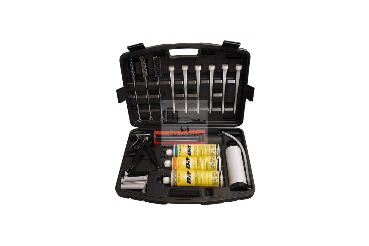 В комплект поставки «BIT-SYSTEM (PROFI)» входит: два пистолета (для картриджей 300 и 400 мл.), удобный насос (240 мл.), щетка металлическая (3 шт.), смеситель (6 шт.), гильза сетчатая (15х85 - 10 шт.).