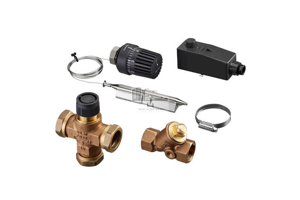 Област примениния: набор применяется для регулирования подающей температуры в системах напольного отопления, например, при комбинированном радиаторном и напольном отоплении. На терморегуляторе выставляется желаемая подающая температура.