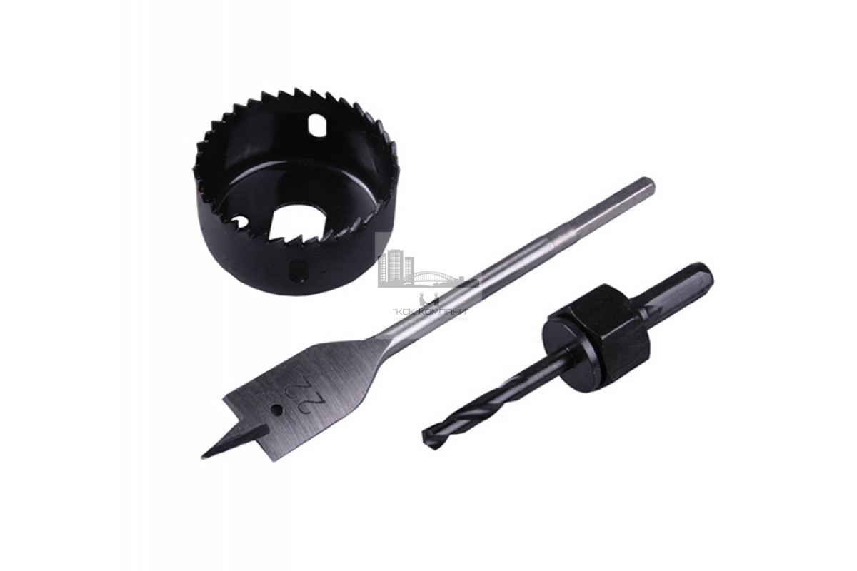 3 предмета: перовое сверло 22 мм; коронка по дереву 48 мм; центр