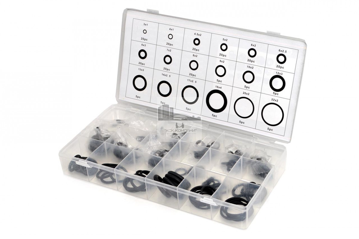 Общее количество уплотнительных колец в наборе: 225 штуки.