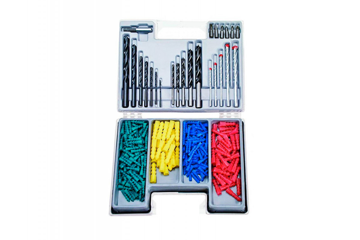 Набор сверл: по бетону 4-5-6-8-10 мм; металлу 2-3-4-5-6-8-10 мм; дереву 4-5-6-8-10 мм; 6 бит; битоде
