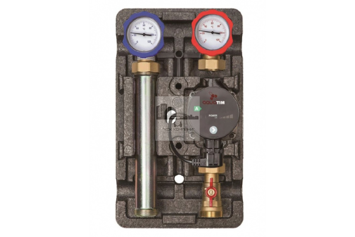 Насосная группа быстрого монтажа NG-UK (без смесителя) представляет собой готовый комплект арматуры в сборе (без насоса), предназначенный для принудительной циркуляции теплоносителя в системе. Может применяться в любом прямом контуре, т.е. в контуре, в котором теплоноситель подаётся напрямую от источника тепла без охлаждения: контур радиаторного отопления, контур загрузки бака ГВС, контур вентиляции. В качестве теплоносителя могут использоваться жидкости, неагрессивные к материалам изделия: вода, растворы на основе гликоля. Максимальное содержание гликоля до 40%.