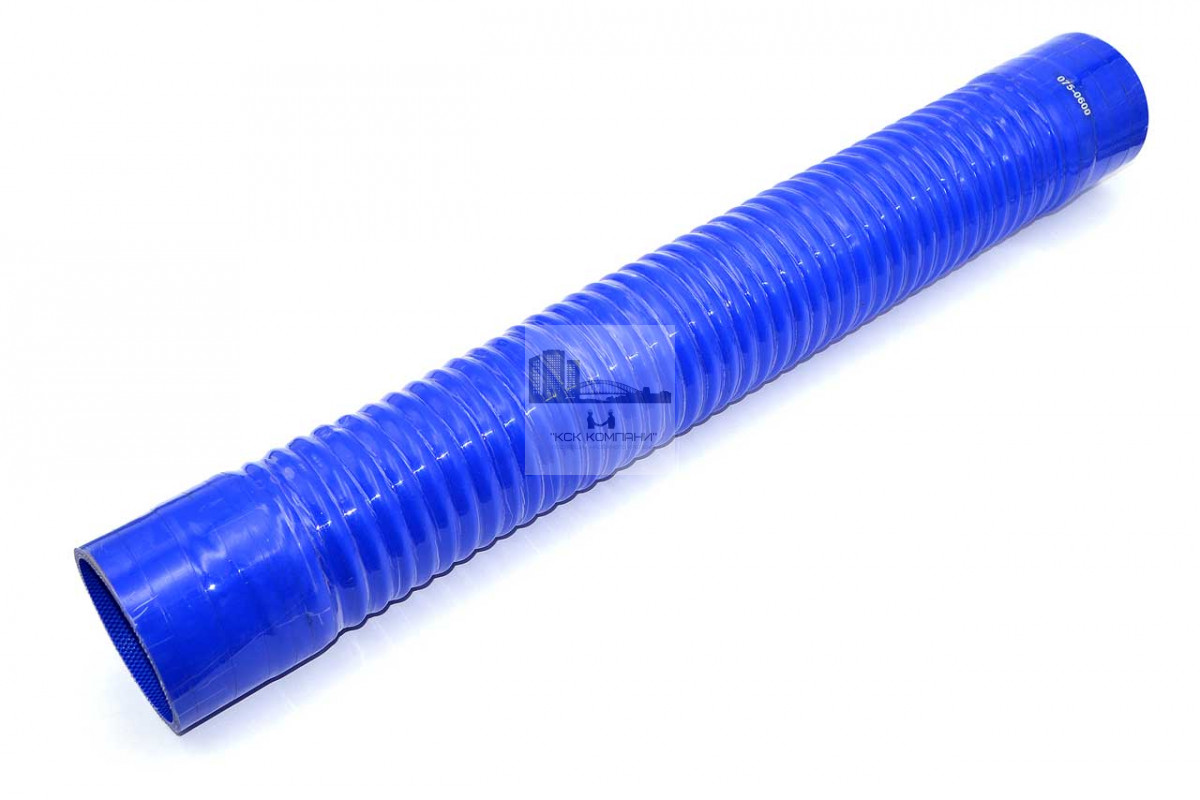 Патрубок гофрированный, армирован стальной спиралью, которая позволяет изгибать патрубок под различными углами (до 90 градусов включительно), что предотвращает заломы и перегибы.