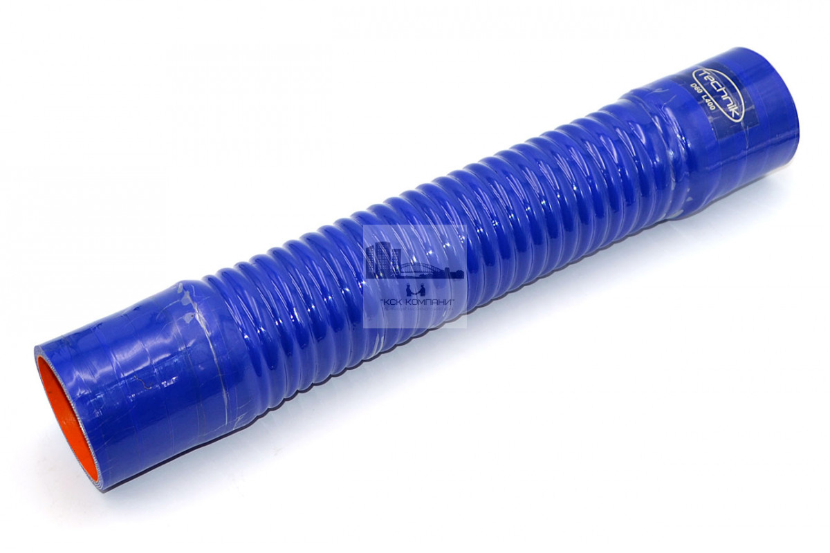 Патрубок гофрированный, армирован стальной спиралью, которая позволяет изгибать патрубок под различными углами (до 180 градусов включительно), что предотвращает заломы и перегибы.