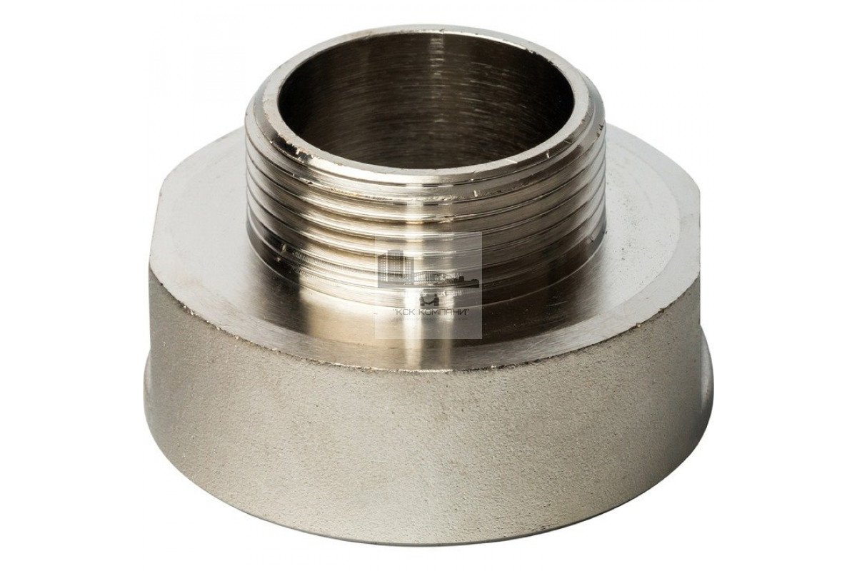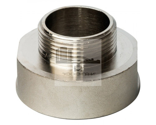 Переходник ВН 2"x1 1/4", никелированный, используется для перехода труб с одного диаметра на другой, а так же с внутренней на наружную резьбу в системах водоснабжения и отопления. Материал: латунь с никелированным покрытием.