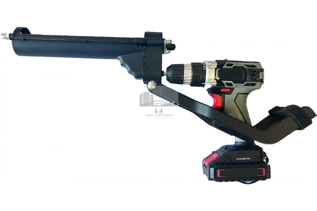 Пистолет-адаптер устанавливается на шуруповерт обеспечивая легкое использование и равномерное распределение химического состава из картриджа.