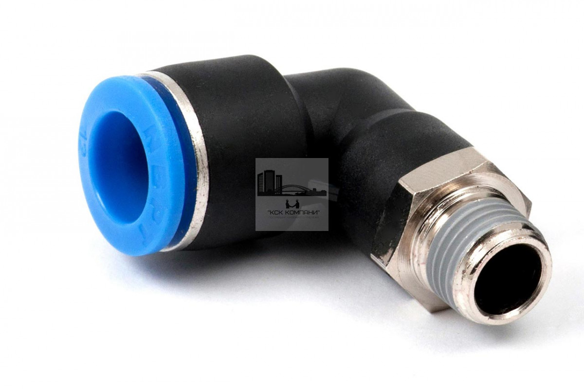 PL – модель фитинга (трубка-резьба): L-образный фитинг с наружной резьбой с одной стороны и нажимным цанговым соединением с другой стороны