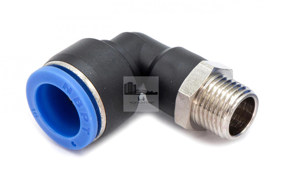 PL – модель фитинга (трубка-резьба): L-образный фитинг с наружной резьбой с одной стороны и нажимным цанговым соединением с другой стороны