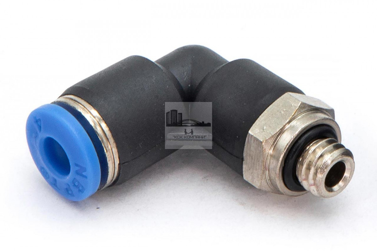 PL – модель фитинга (трубка-резьба): L-образный фитинг с наружной резьбой с одной стороны и нажимным цанговым соединением с другой стороны