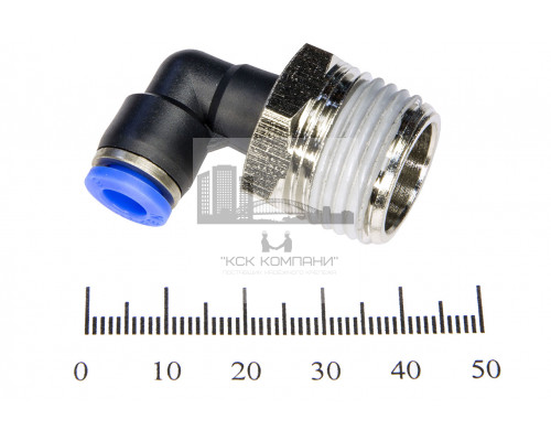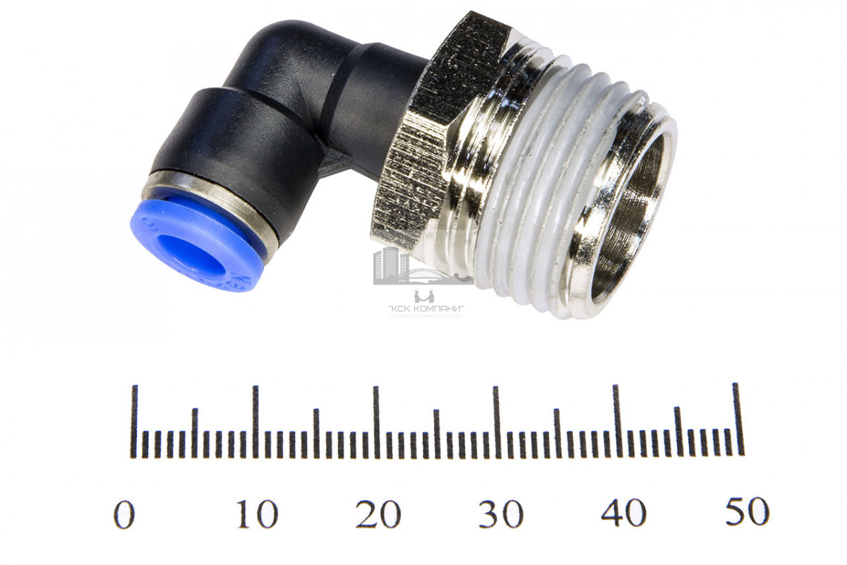PL – модель фитинга (трубка-резьба): L-образный фитинг с наружной резьбой с одной стороны и нажимным цанговым соединением с другой стороны