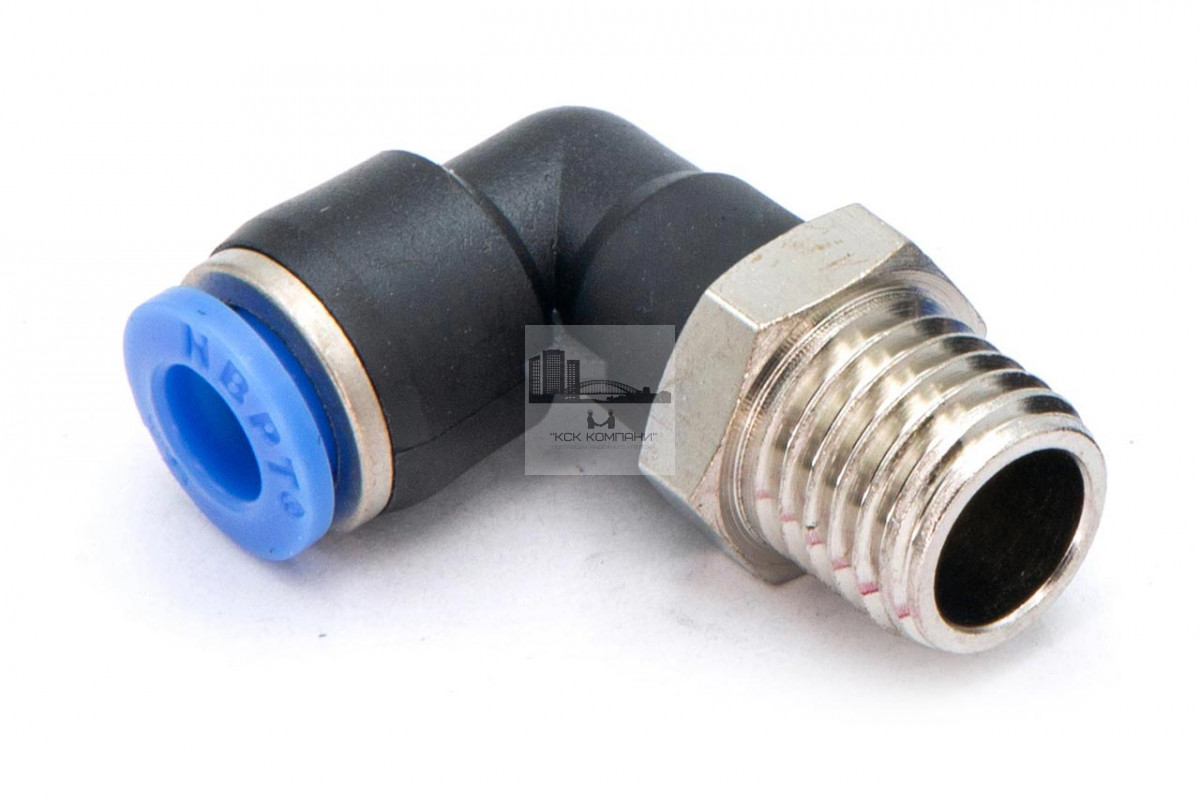 PL – модель фитинга (трубка-резьба): L-образный фитинг с наружной резьбой с одной стороны и нажимным цанговым соединением с другой стороны