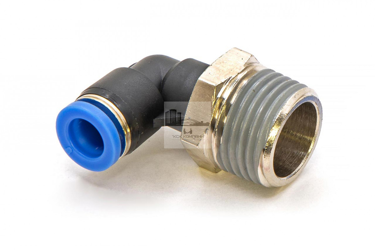 PL – модель фитинга (трубка-резьба): L-образный фитинг с наружной резьбой с одной стороны и нажимным цанговым соединением с другой стороны