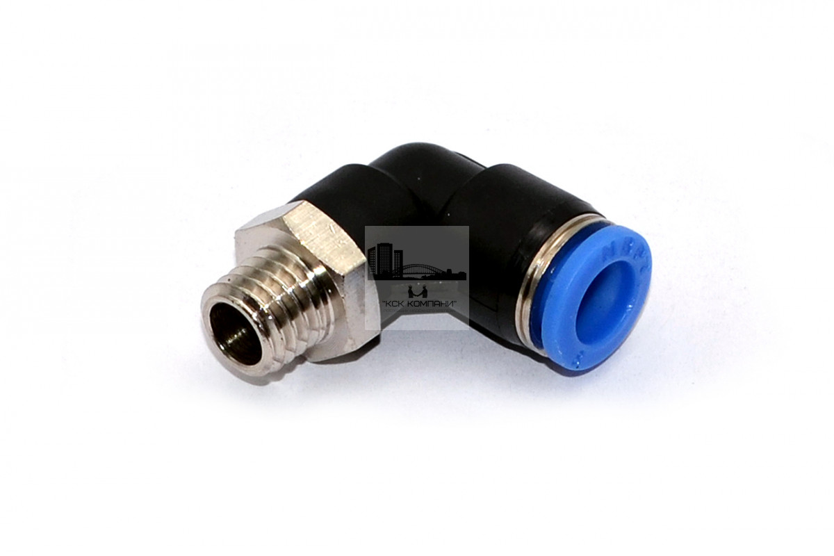 PL – модель фитинга (трубка-резьба): L-образный фитинг с наружной резьбой с одной стороны и нажимным цанговым соединением с другой стороны