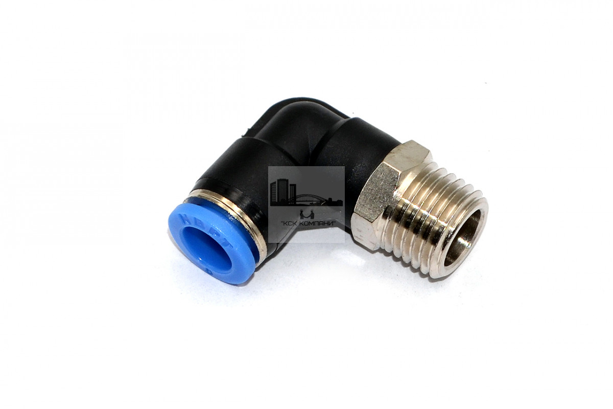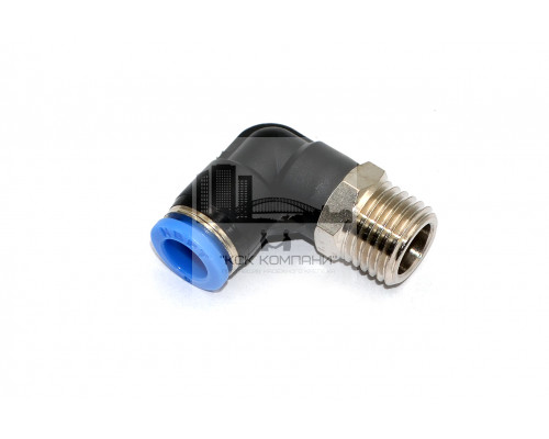 PL – модель фитинга (трубка-резьба): L-образный фитинг с наружной резьбой с одной стороны и нажимным цанговым соединением с другой стороны