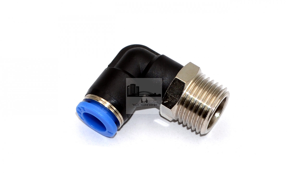 PL – модель фитинга (трубка-резьба): L-образный фитинг с наружной резьбой с одной стороны и нажимным цанговым соединением с другой стороны