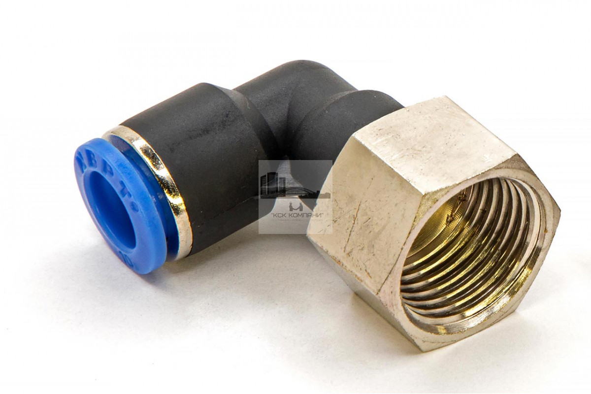PLF – модель фитинга (трубка-резьба): L-образный фитинг с внутренней резьбой с одной стороны и нажимным цанговым соединением с другой стороны