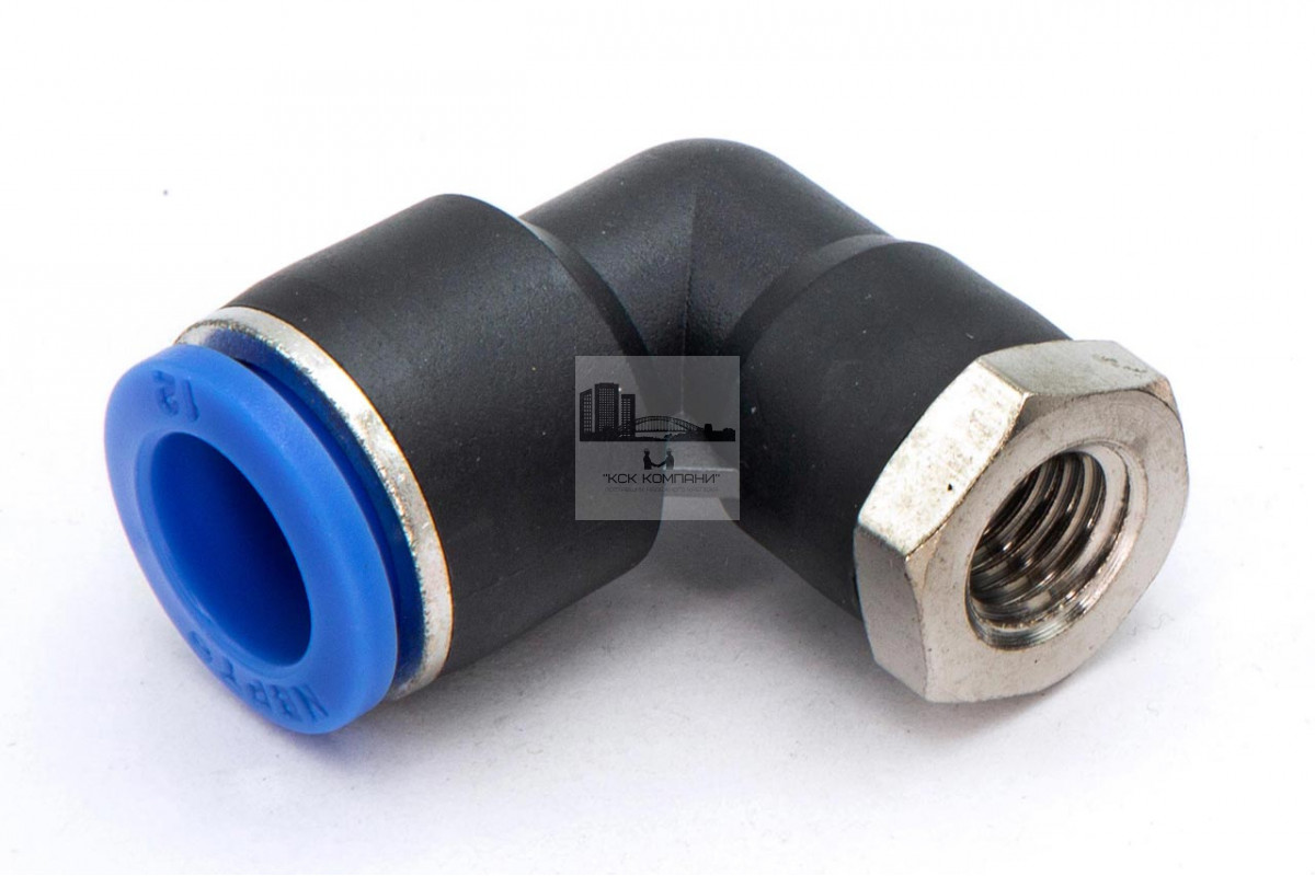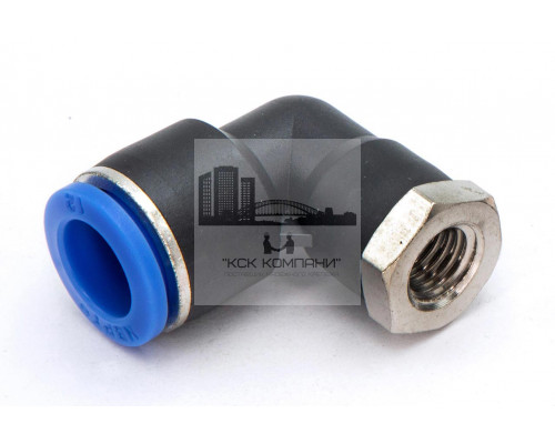 PLF – модель фитинга (трубка-резьба): L-образный фитинг с внутренней резьбой с одной стороны и нажимным цанговым соединением с другой стороны