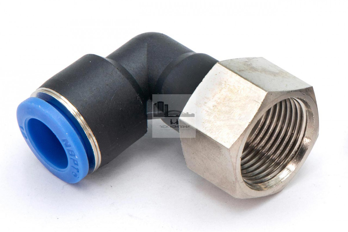 PLF – модель фитинга (трубка-резьба): L-образный фитинг с внутренней резьбой с одной стороны и нажимным цанговым соединением с другой стороны