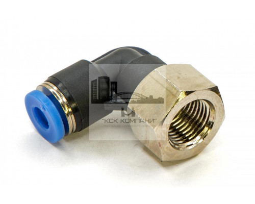 PLF – модель фитинга (трубка-резьба): L-образный фитинг с внутренней резьбой с одной стороны и нажимным цанговым соединением с другой стороны