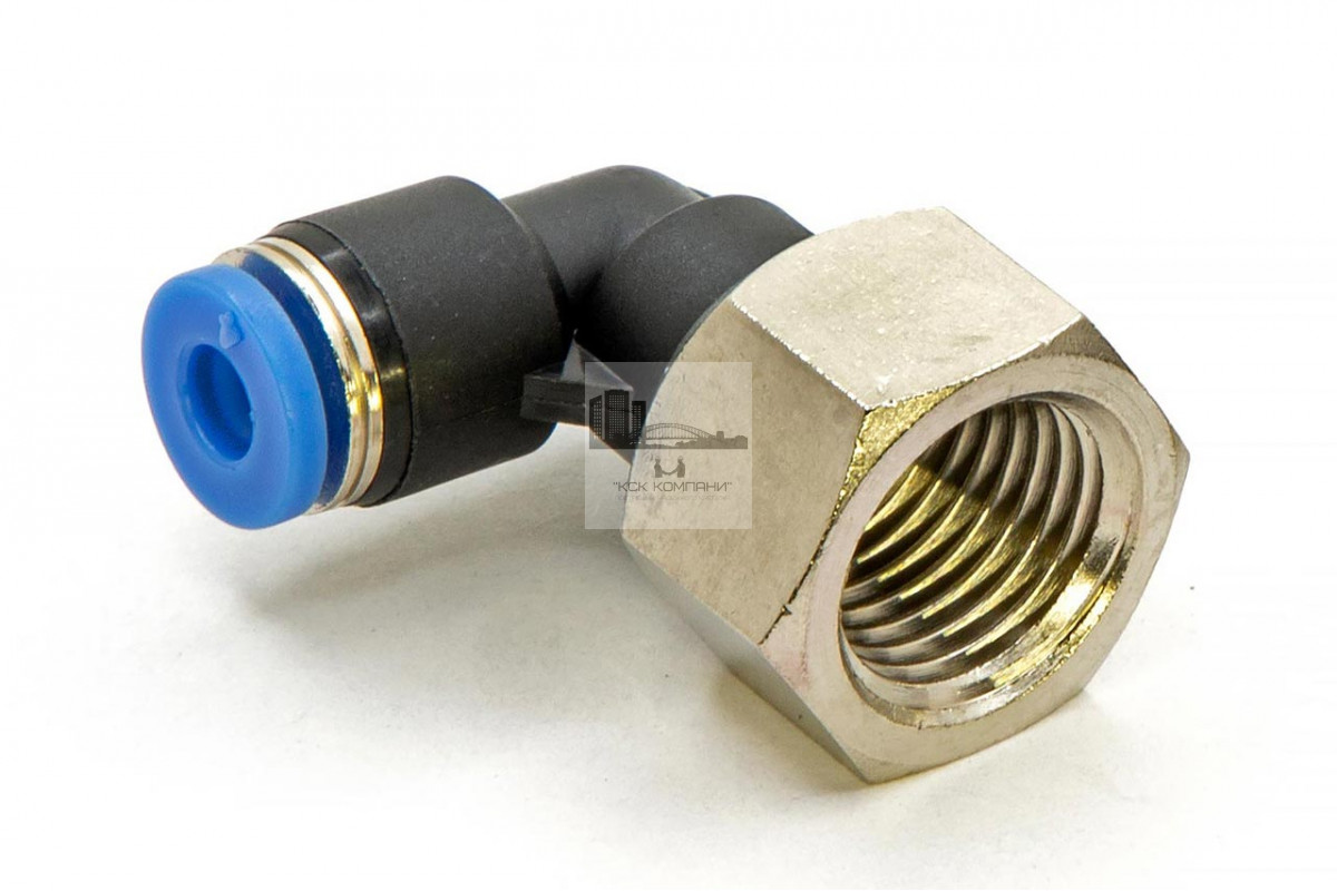 PLF – модель фитинга (трубка-резьба): L-образный фитинг с внутренней резьбой с одной стороны и нажимным цанговым соединением с другой стороны