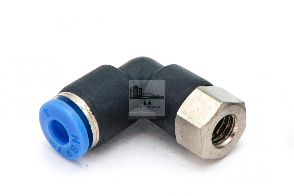 PLF – модель фитинга (трубка-резьба): L-образный фитинг с внутренней резьбой с одной стороны и нажимным цанговым соединением с другой стороны