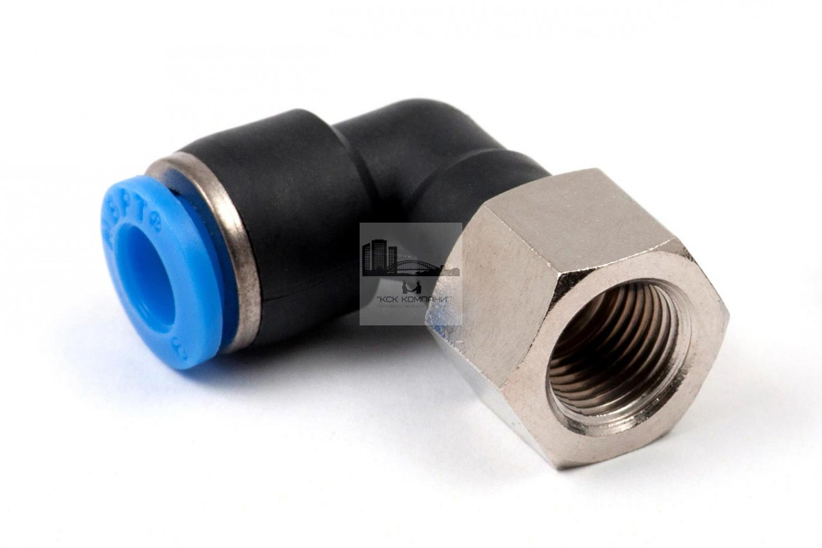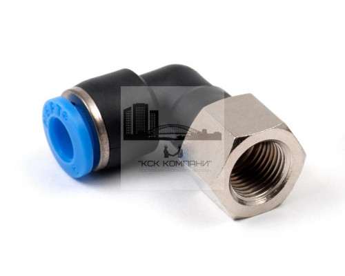 PLF – модель фитинга (трубка-резьба): L-образный фитинг с внутренней резьбой с одной стороны и нажимным цанговым соединением с другой стороны