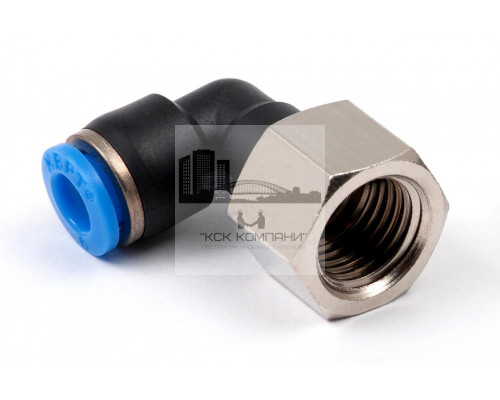 PLF – модель фитинга (трубка-резьба): L-образный фитинг с внутренней резьбой с одной стороны и нажимным цанговым соединением с другой стороны
