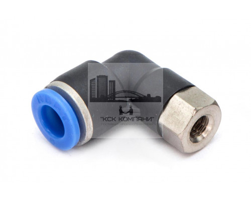 PLF – модель фитинга (трубка-резьба): L-образный фитинг с внутренней резьбой с одной стороны и нажимным цанговым соединением с другой стороны