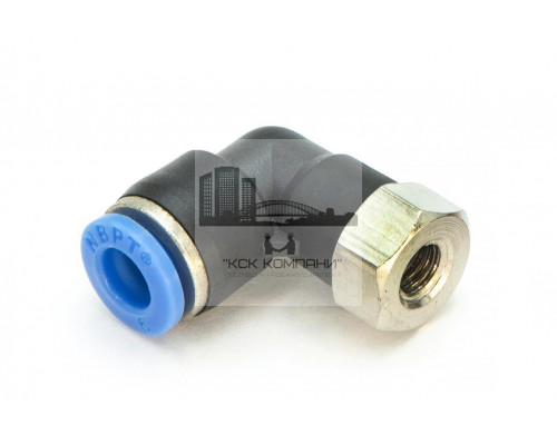 PLF – модель фитинга (трубка-резьба): L-образный фитинг с внутренней резьбой с одной стороны и нажимным цанговым соединением с другой стороны