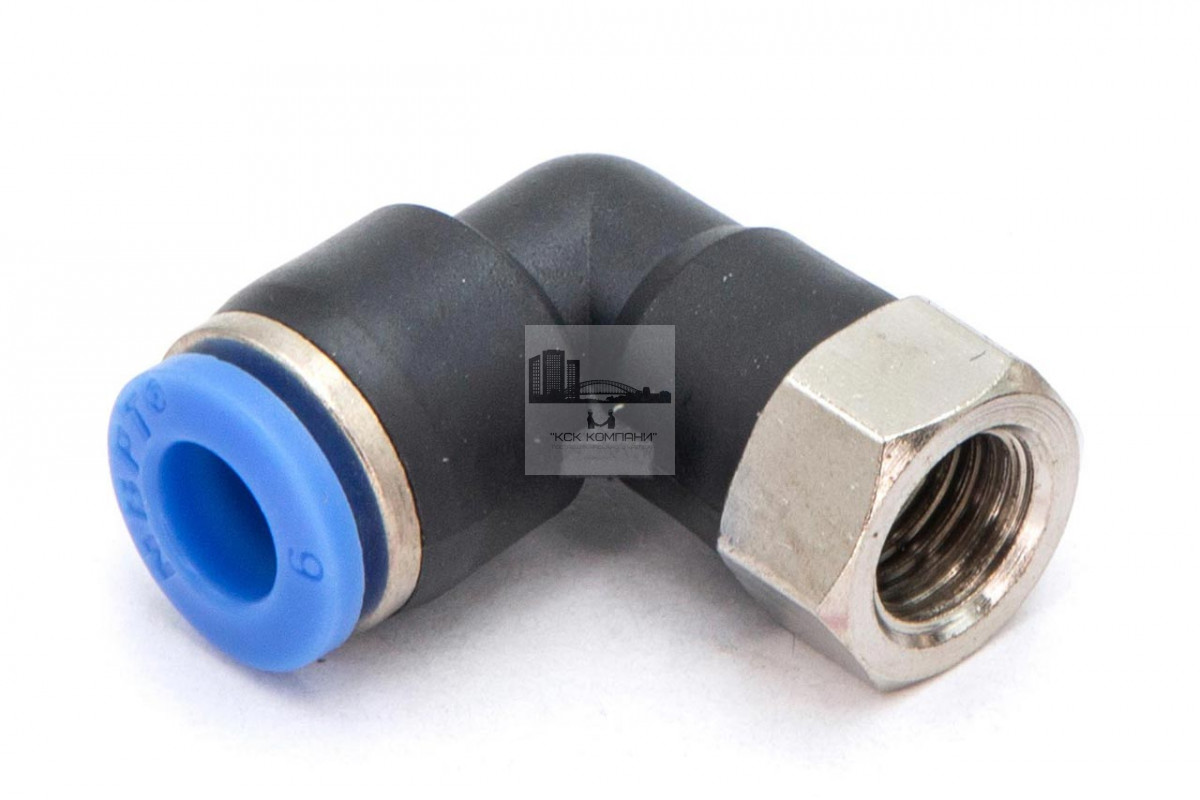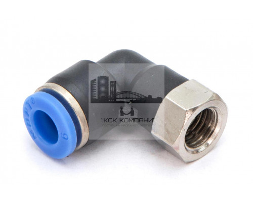 PLF – модель фитинга (трубка-резьба): L-образный фитинг с внутренней резьбой с одной стороны и нажимным цанговым соединением с другой стороны