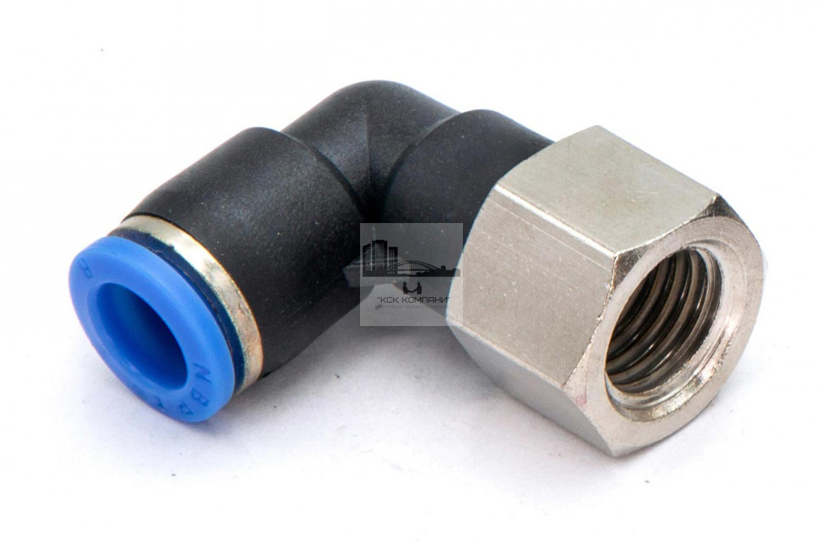 PLF – модель фитинга (трубка-резьба): L-образный фитинг с внутренней резьбой с одной стороны и нажимным цанговым соединением с другой стороны